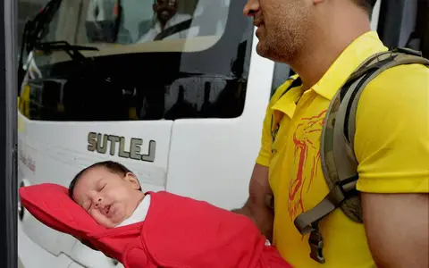 We bring you the Captain Cool Mahendra Singh Dhoni and his little star Ziva Dhoni who is 5 months old now, and the first child of the Indian Captain, who was touring the IPL with her daddy cool.