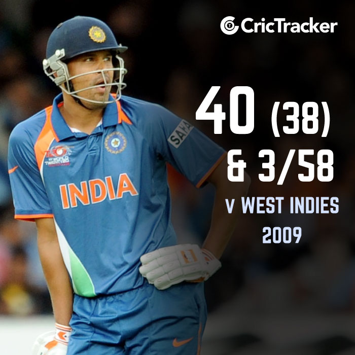 5. 40 off 38 & 3/58 vs West Indies, 2009
