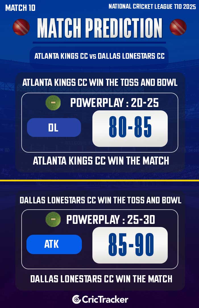 Atlanta Kings CC will take on Dallas Lonestars CC in match No. 10 of the NCL T10 2025 at the University of Texas at Dallas on Thursday, October 09.