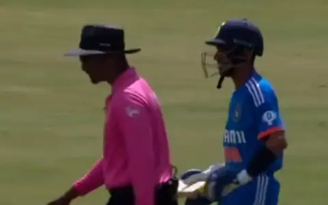 Seeing their calls, Chahal attempted to walk back in the dugout, but he was not allowed to do so by the umpires. According to the laws of the game, once a batter steps onto the field after the fall of a wicket, he cannot go back in to send another, which was the reason why the umpires stopped him and Chahal had to bat at number 10.