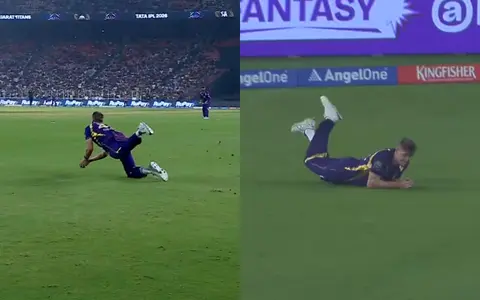 Gill was scoring freely, hitting 80 off just 49 deliveries and would take something special to dismiss India’s Test and ODI captain. That something special came on the last ball of the 17th over. Vaibhav Arora bowled a wide yorker from around the wicket, only for Gill to slice the ball down to deep point, where Green was stationed. With the ball dropping quickly, the six-foot-six-inch all-rounder dived in front to grab and catch.