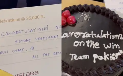 While boarding their Vistara Airlines flight, the Pakistani team members were treated to a delightful surprise by the flight crew, who presented them with a celebratory cake. This unexpected gesture was in recognition of their remarkable achievement in chasing down a huge target against Sri Lanka in their second World Cup match. The camaraderie and spirit of the team were great, making the journey even more enjoyable.
