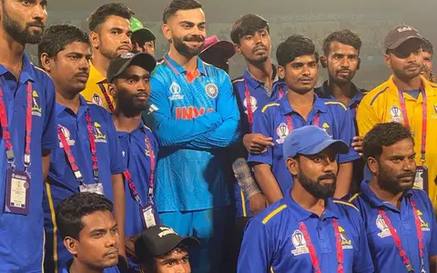 ODI World Cup 2023: Virat Kohli poses with ground staff at Eden Gardens after India's clinical win over South Africa