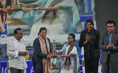 India's Women's World Cup-winning cricketer Richa Ghosh was provided a gold-plated bat and ball and a cheque of INR 34 lakh, which represented each run she made in the tournament, where the Women in Blue emerged victorious. Chief Minister of West Bengal Mamata Banerjee was also present at the coveted event, which took place at the Eden Gardens, the iconic venue in Kolkata.