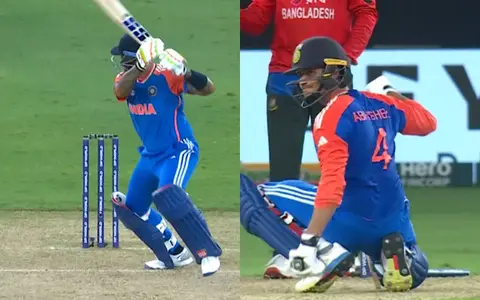 Suryakumar Yadav cut the first ball of the 12th over, bowled by Mustafizur Rahman, towards the left of backward point. However, Rishad anticipated well and put in a dive to stop a certain boundary. He managed to get the ball in his control on his first attempt, and he hurled a throw towards the non-striker's end. Mustafizur did well to get back in time and effect the run out as Abhishek failed to make it back to his crease after being sent back by his captain.