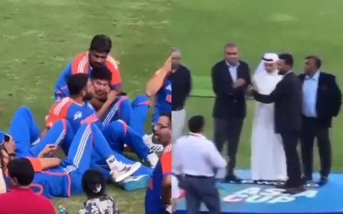 The post-match ceremony did not happen as the members of the triumphant Indian team decided not to accept medals and trophies from the ACC president due to the stance he has had on India as a nation in the wake of the recent Pahalgam terror attack. The players could be seen relaxed on the field, chatting around with each other while sitting on the turf with phones in their hands.