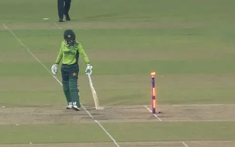 Although Muneeba might have been given out leg before wicket had India appealed earlier, her actual dismissal came in a different and contentious manner. On the final ball of the fourth over from Kranti Goud, Muneeba advanced down the pitch. A sharp throw from Deepti Sharma hit the stumps, and while Muneeba had initially grounded her bat, it was in the air when the ball hit the stumps and the baills were dislodged. After a third-umpire review, the decision was confirmed on the big screen as out.