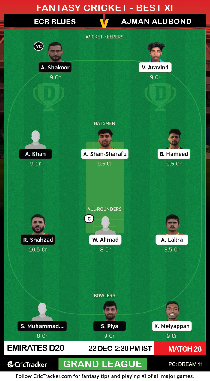 Having done exceedingly well as a team throughout this tournament, the ECB Blues will be coming in on Tuesday to play their 9th game of the tournament as they play against the Ajman Alubond, a team that has been struggling to climb up through the ranks in the points table and are virtually out of the competition.