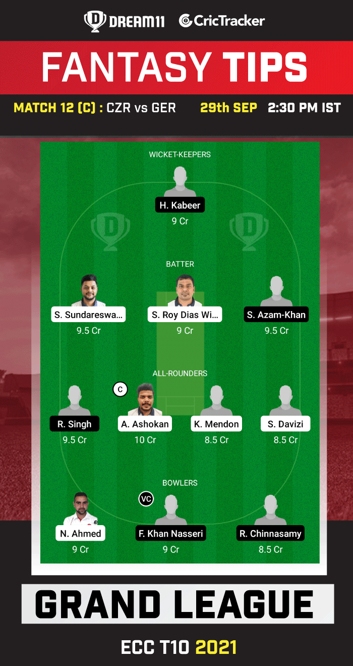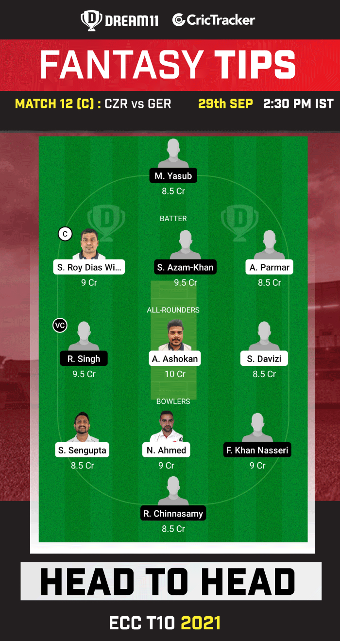 Suggested Playing XI No.1 for CZR vs GER Dream11 Fantasy Cricket: