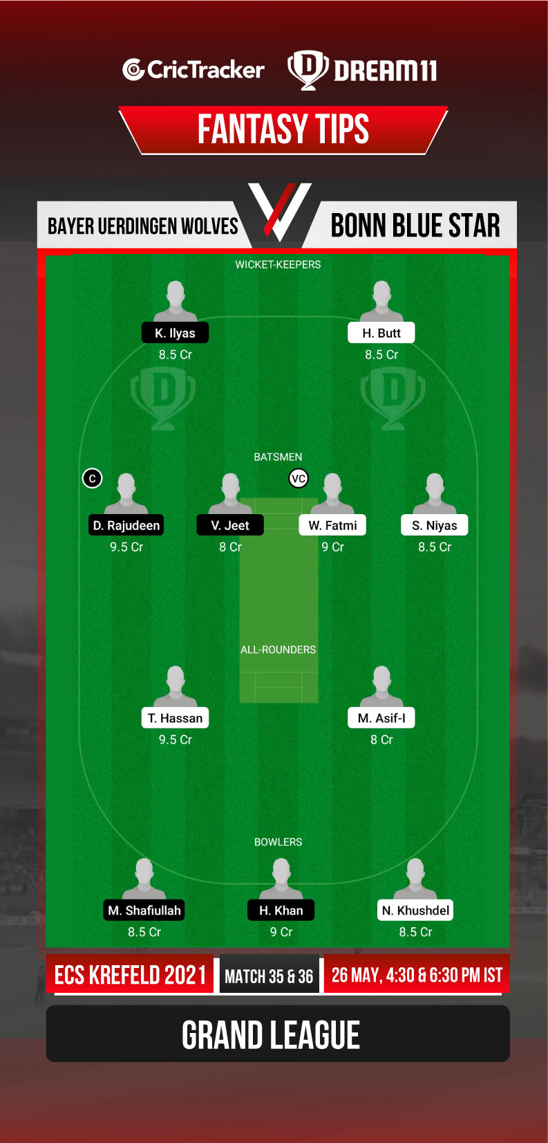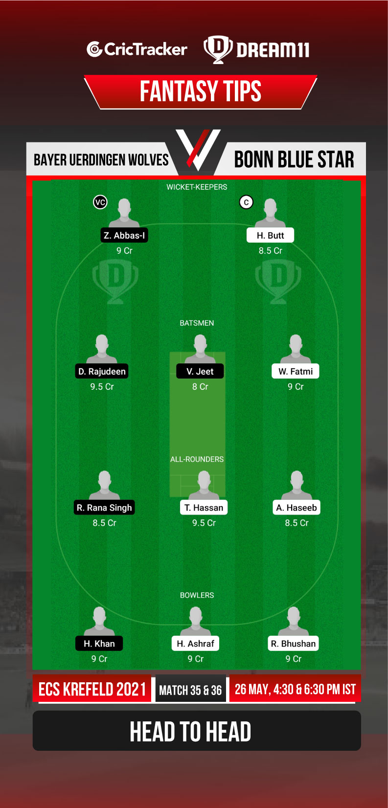 Meanwhile, Bonn Blue Star shares the same points as the Wolves and are just ahead in terms of net run rate. They are coming into this match with a massive win over the DJK SG Solingen by 9 wickets with 31 balls still in the game. They would look to keep the same momentum for the next games as well.