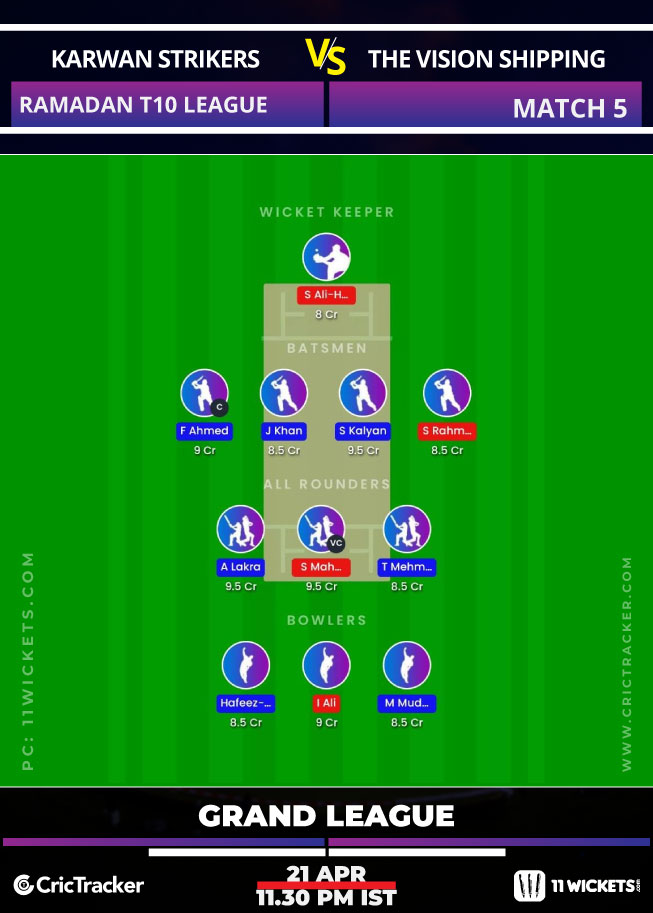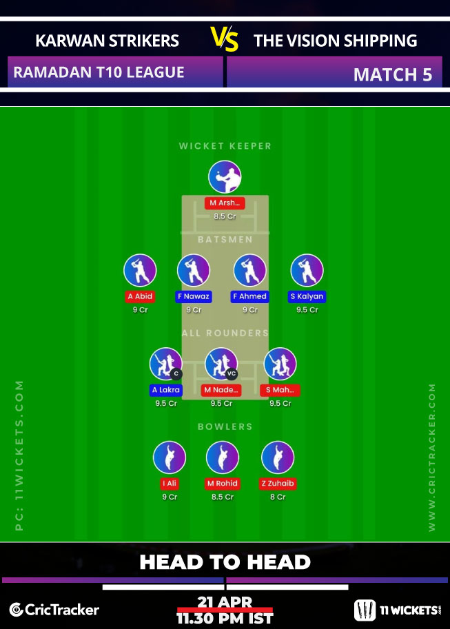 KAS vs TVS 11Wickets Prediction, Fantasy Cricket Tips, Playing 11, Pitch Report and Injury Update for Match 5 of Ramadan T10 League