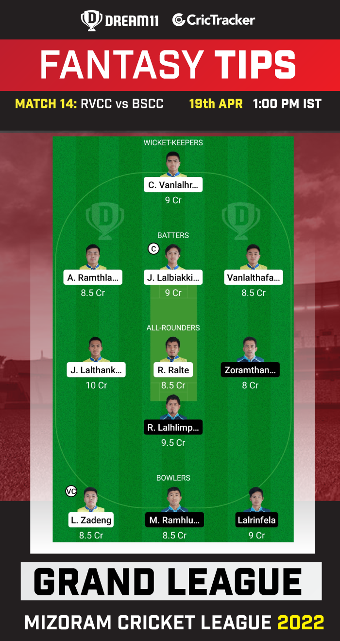 Mizoram Cricket League 2022, Match 14: RVCC vs BSCC Dream11 Prediction, Fantasy Cricket Tips, Playing 11, Pitch Report and Injury Update