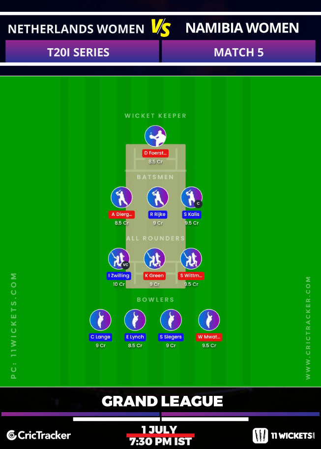 Suggested Playing XI No.1 for NL-W vs NAM-W 11Wickets Fantasy Cricket: