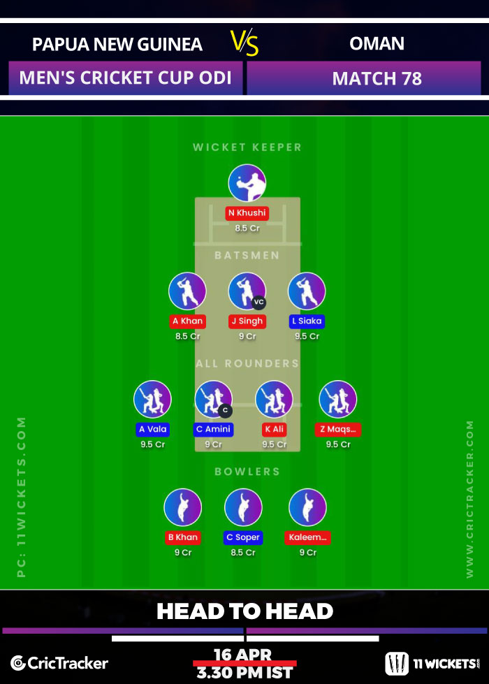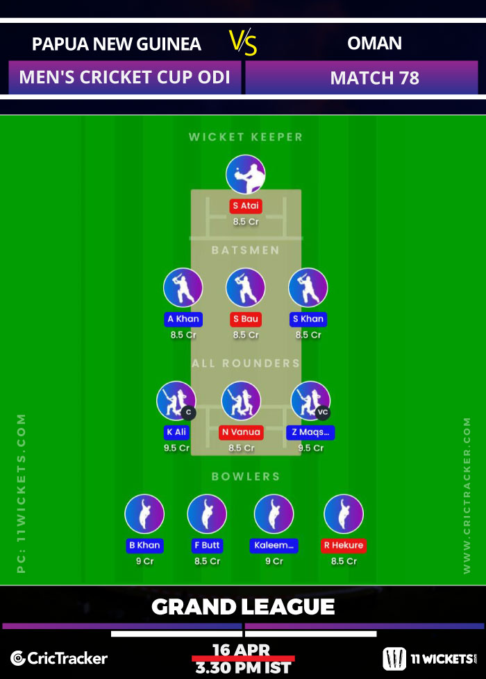 Suggested Playing XI No.1 for PNG vs OMN 11Wickets Fantasy Cricket: