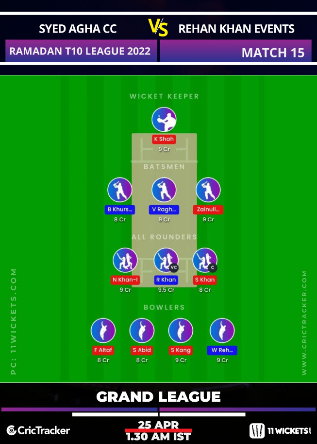 Vice-Captain Options: Faizal Altaf, Khalid Shah