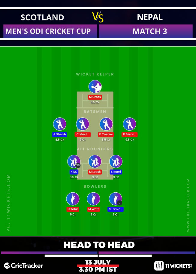 Suggested Playing XI No.1 for SCO vs NEP 11Wickets Fantasy Cricket: