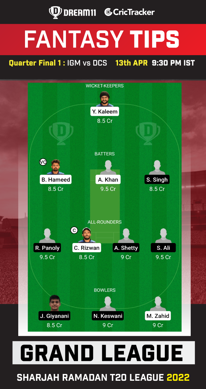 Sharjah Ramadan T20 League 2022, Quarter Final 1: IGM vs DCS Dream11 Prediction, Fantasy Cricket Tips, Playing 11, Pitch Report and Injury Update