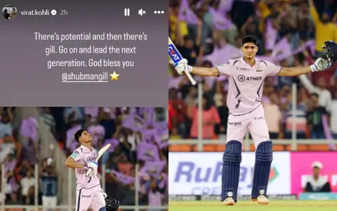 Highly impressed with his knock against the orange outfit, Kohli took to his social media handle to lavish praise on the opener with a heartwarming caption. Kohli, who has himself etched massive records, subtly named Gill as the successor for the impact the latter has had in recent times.