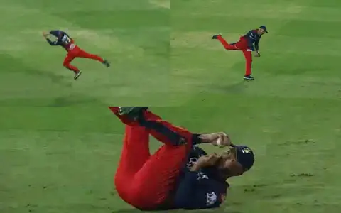 Du Plessis was at his agile best when he grabbed a stunner at mid-off to send back Hrithik Shokeen of Harshal Patel’s delivery in the 18th over. Du Plessis, who is well-known for his superb fielding tactics, ran backward to take a catch over his shoulders as Shokeen walked back with five runs to his name.