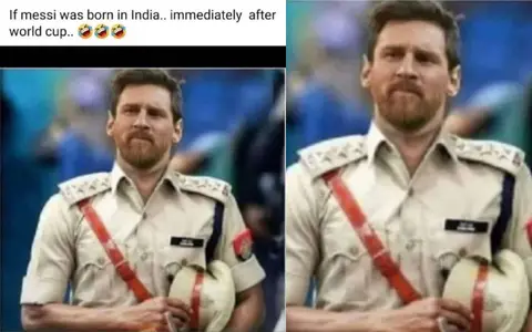 Taking to his official Instagram account, Sehwag shared a morphed face of Messi wearing a police uniform and hilariously mentioned that the Argentina megastar would have definitely got a government job immediately after winning the World Cup if he was born in India.