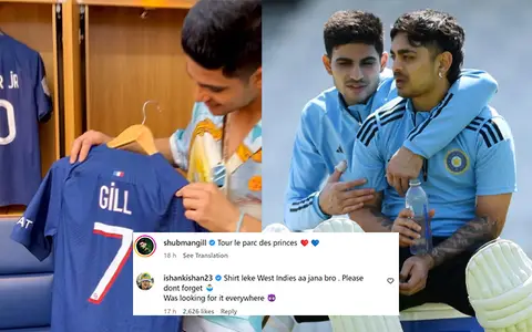 Gill, who currently holds the record of being India's leading run-scorer in international cricket in 2023, shared a captivating video where he proudly displayed PSG's jersey adorned with his name on the back. The young talent conveyed his heartfelt gratitude to the football club for extending him the invitation. Gill shared the video of his visit on his official IG handle where Ishan Kishan came up with a funny request.