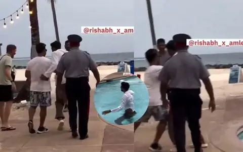 In the video, Pant and Khaleel were seen strolling towards a nearby beach, accompanied by a trailing security guard and a foreign guide who engaged in conversation with them. What began as friendly banter between Khaleel and Pant took a humorous turn when Khaleel playfully attempted to embrace Pant from behind, only to be prodded into a nearby swimming pool.