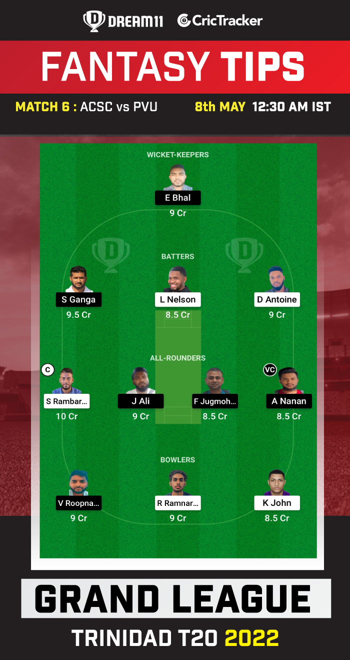 Trinidad T20 2022, Match 6: ACSC vs PVU Dream11 Prediction, Fantasy Cricket Tips, Playing 11, Pitch Report and Injury Update