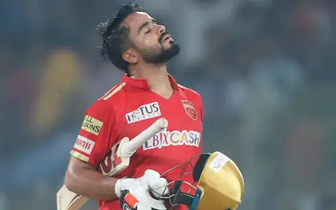 The swashbuckling batter reached his second half-century in IPL off 42 balls as Punjab reached the 100-run mark in the 14th over. With the death overs approaching, Prabhsimran quickly shifted gears and started finding boundaries on most occasions. The opening batter reached the coveted three-figure mark with a boundary against Khaleel Ahmed and completed his hundred off 61 balls.